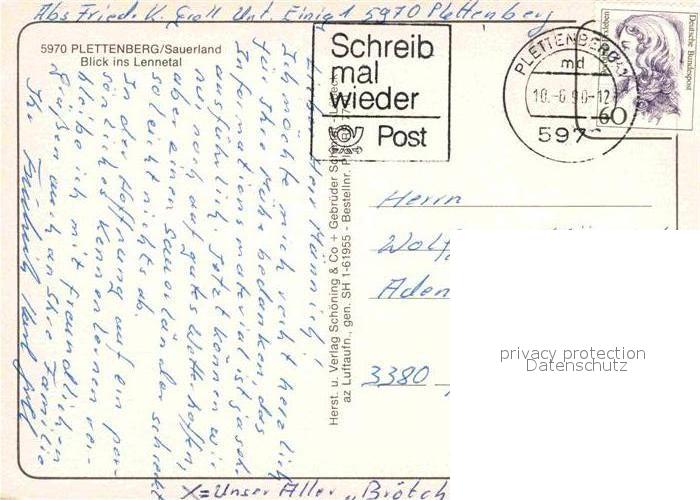 72871289 alte Postkarte Plettenberg Fliegeraufnahme mit Lennetal postalisch gelaufen Erhaltung siehe scans [LiesaD40] KatCode: 11110005962052