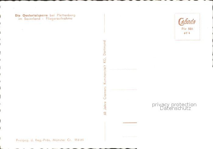 71831874 Plettenberg Fliegeraufnahme Oestertalsperre postalisch nicht gelaufen Erhaltung siehe scans KatCode: 11110005962052