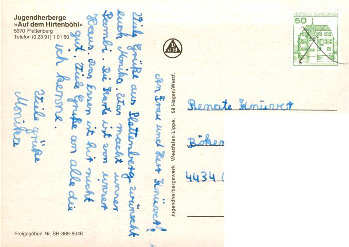 73876226 alte Postkarte Plettenberg Jugendherberge Auf dem Hirtenboehl postalisch gelaufen Fliegeraufnahme Erhaltung siehe scans [WerneD78] KatCode: 11110005962052
