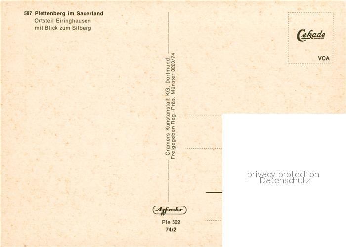 73833758 Plettenberg OT Eiringhausen mit Silberberg Fliegeraufnahme postalisch nicht gelaufen Erhaltung siehe scans [FriedD77] KatCode: 11110005962052