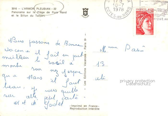 13786690 Pleubian 22 Cotes-d Armor Panorama sur la Plage de Pors Rand et le Sillon du Talbert postalisch gelaufen Erhaltung siehe scans [WerneD78] carte postale Wern Katcode 11170022322195
