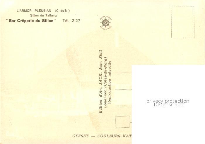 13742639 Pleubian Sillon du Talberg Bar Crêperie du Sillon postalisch nicht gelaufen Erhaltung siehe scans [FriedD77] Frie Katcode 11170022322195
