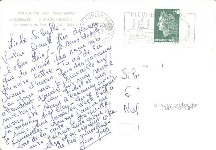 12445027 carte postale Pleumeur-Bodou Camping Port postalisch gelaufen Erhaltung siehe scans KatCode: 11170022322198