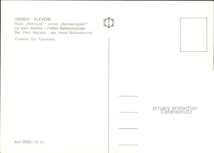 Plevene Pleven Bulgaria Park Kajlaka Hotel Balkantourist postalisch nicht gelaufen Erhaltung siehe scans [LiesaD40 kt094box]