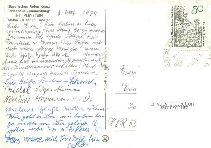 74049385 alte Postkarte Pleystein Bayerisches Rotes Kreuz Ferienhaus Sonnenhang postalisch gelaufen Erhaltung siehe scans [FriedD77] KatCode: 11110009374147