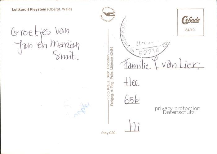 72314452 alte Postkarte Pleystein Fliegeraufnahme postalisch gelaufen Erhaltung siehe scans KatCode: 11110009374147