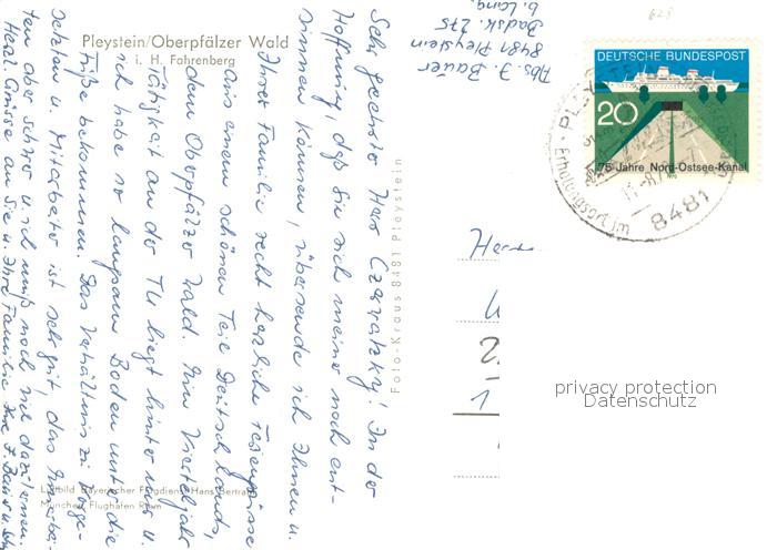 73667159 alte Postkarte Pleystein Fliegeraufnahme postalisch gelaufen Erhaltung siehe scans [WerneD78] KatCode: 11110009374147