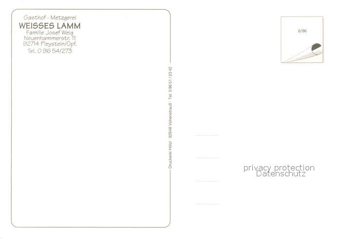 73660366 Pleystein Gasthof Metzgerei Weisses Lamm Bergkirche Panorama Oberpfaelzer Wald postalisch nicht gelaufen Erhaltung siehe scans [FriedD77] KatCode: 11110009374147