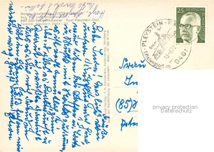 73046091 alte Postkarte Pleystein Hotel Gaststaette Zottbachhaus postalisch gelaufen Erhaltung siehe scans [WerneD78] KatCode: 11110009374147