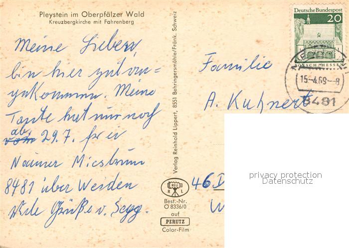 73012217 alte Postkarte Pleystein Kreuzbergkirche Fahrenberg Panorama postalisch gelaufen Erhaltung siehe scans [KathaD81] KatCode: 11110009374147