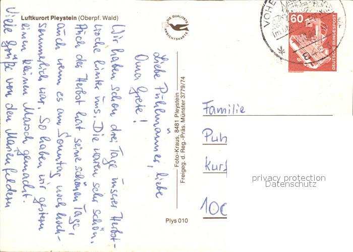 72461962 alte Postkarte Pleystein Luftkurort postalisch gelaufen Erhaltung siehe scans KatCode: 11110009374147
