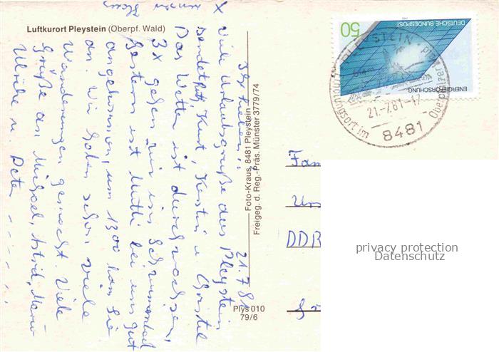 74043700 alte Postkarte Pleystein Panorama Luftkurort postalisch gelaufen Fliegeraufnahme Erhaltung siehe scans [FriedD77] KatCode: 11110009374147