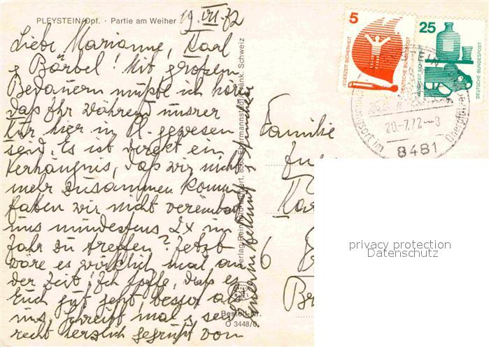 72750553 alte Postkarte Pleystein Partie am Weiher postalisch gelaufen Erhaltung siehe scans [LiesaD40] KatCode: 11110009374147