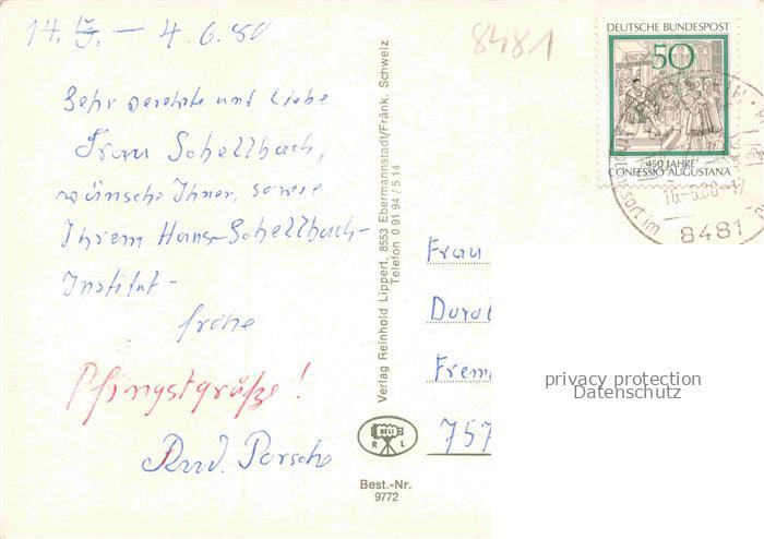 74049380 alte Postkarte Pleystein Teilansichten Zentrum Brunnen Wallfahrtskirche Heiligkreuz postalisch gelaufen Erhaltung siehe scans [FriedD77] KatCode: 11110009374147