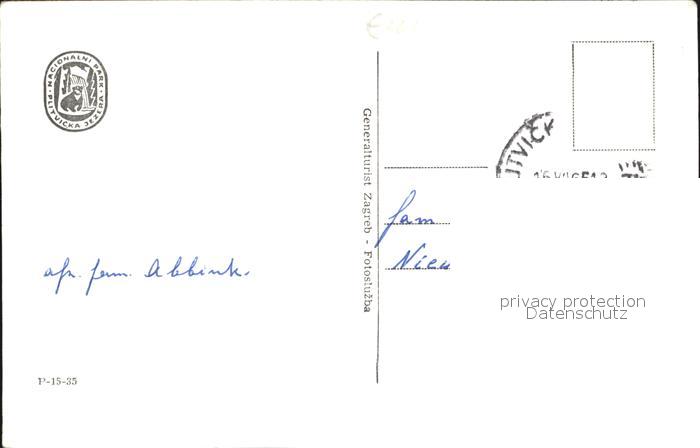 old postcard Plitvicka Jezera Wasserfaelle postalisch gelaufen Erhaltung siehe scans