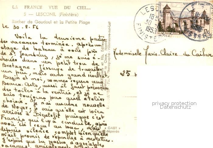 13278704 carte postale Plobannalec-Lesconil Rocher de Gaudoul et la Petite Plage Vue aerienne postalisch gelaufen Erhaltung siehe scans [WerneD78] KatCode: 11170029429165