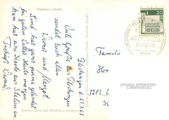 72719047 alte Postkarte Plochingen postalisch gelaufen Erhaltung siehe scans [LiesaD40] KatCode: 11110008116056