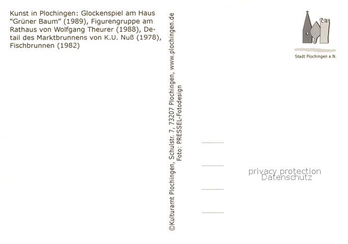 73213905 Plochingen Kunstwerke Glockenspiel Figurengruppe am Rathaus Wolfgang Theurer Detail Marktbrunnen K. U. Nuss Fischbrunnen postalisch nicht gelaufen Erhaltung siehe scans [FriedD77] KatCode: 11110008116056