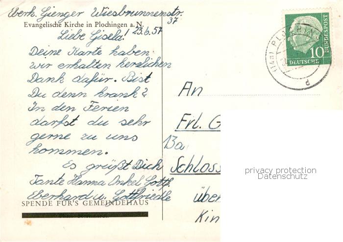 73868230 Plochingen Neckar Blick zur evangelischen Kirche postalisch gelaufen Erhaltung siehe scans [FriedD77] alte Postkarte Frie Katcode 11110008116056