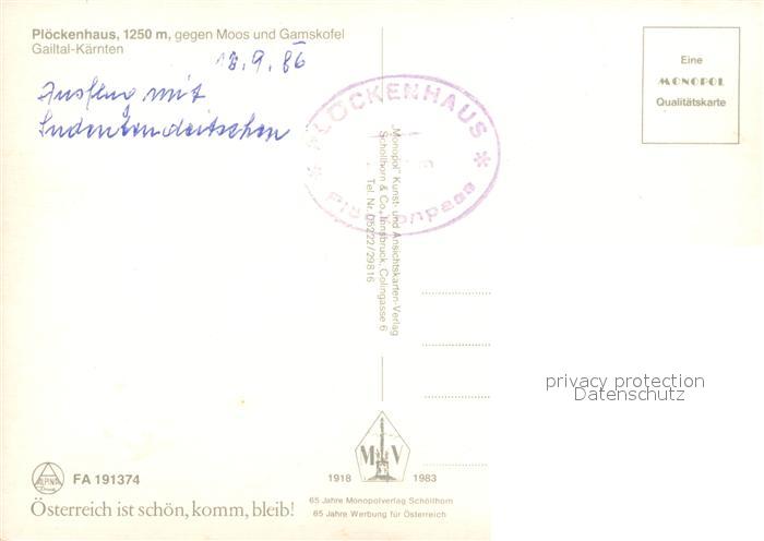 73160521 Ploeckenhaus Gegen Moos und Gamskofel postalisch nicht gelaufen Erhaltung siehe scans [LiesaD40] KatCode: 11390212020307