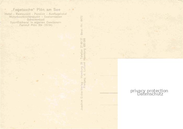 74104216 Ploen am See Schleswig-Holstein Fegetasche Hotel Restaurant Fliegeraufnahme postalisch nicht gelaufen Erhaltung siehe scans [WerneD78] Wern Katcode 11110001057057