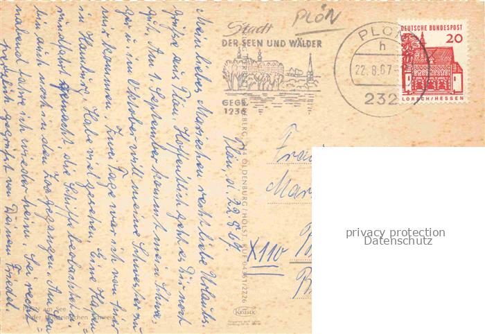 74040734 alte Postkarte Ploen am See Schleswig-Holstein Panorama Naturpark Holsteinische Schweiz postalisch gelaufen Fliegeraufnahme Erhaltung siehe scans [FriedD77] KatCode: 11110001057057