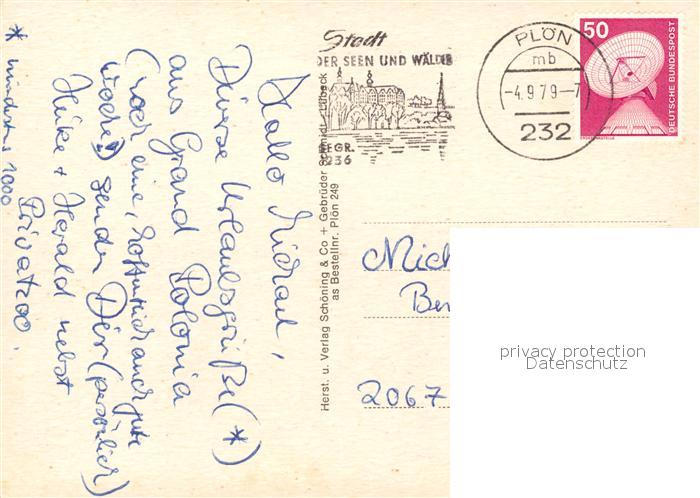 73084903 alte Postkarte Ploen See Bahnhofstrasse Schloss Markt Kirche postalisch gelaufen Erhaltung siehe scans [NatalD47] KatCode: 11110001057057