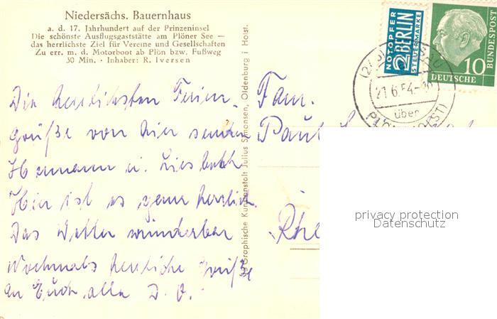 73283774 alte Postkarte Ploen See Bauernhaus postalisch gelaufen Erhaltung siehe scans [NatalD47] KatCode: 11110001057057
