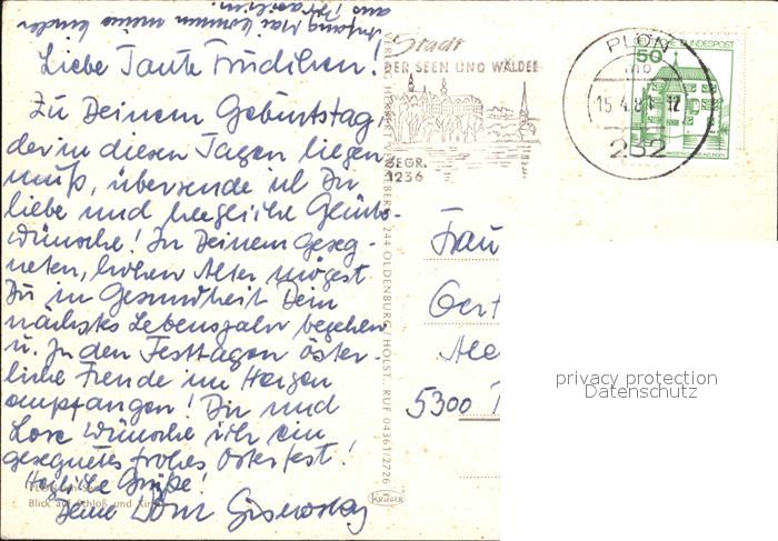 72451311 alte Postkarte Ploen See Blick auf Schloss und Kirche postalisch gelaufen Erhaltung siehe scans KatCode: 11110001057057