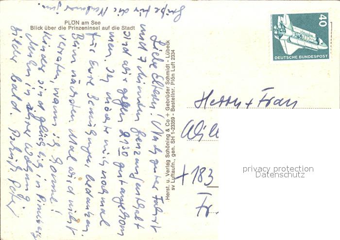 72401223 alte Postkarte Ploen See Blick Prinzeninsel Stadtansicht postalisch gelaufen Erhaltung siehe scans KatCode: 11110001057057