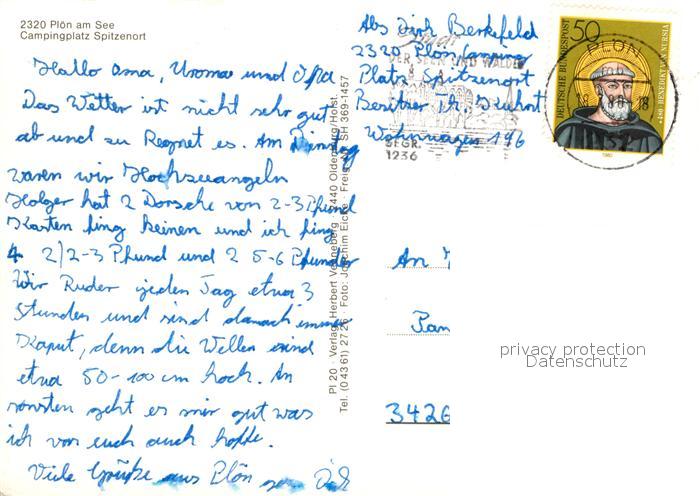72953754 alte Postkarte Ploen See Campingplatz Spitzenort Fliegeraufnahme postalisch gelaufen Erhaltung siehe scans [PaolaD17] KatCode: 11110001057057