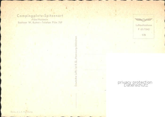 72110912 Ploen See Campingplatz Spitzenort Fliegeraufnahme postalisch nicht gelaufen Erhaltung siehe scans KatCode: 11110001057057