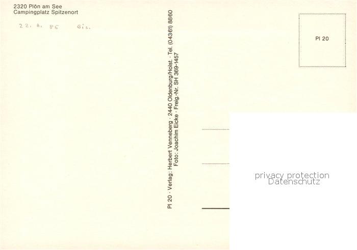 73248192 Ploen See Campingplatz Spitzenort Naturpark Holsteinische Schweiz Fliegeraufnahme postalisch nicht gelaufen Erhaltung siehe scans [FriedD77] KatCode: 11110001057057
