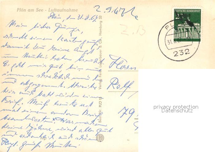 73032231 alte Postkarte Ploen See Fliegeraufnahme postalisch gelaufen Erhaltung siehe scans [PaolaD17] KatCode: 11110001057057