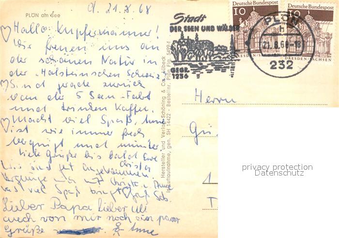 73026596 alte Postkarte Ploen See Fliegeraufnahme postalisch gelaufen Erhaltung siehe scans [KathaD81] KatCode: 11110001057057