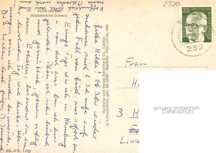 72887493 alte Postkarte Ploen See Fliegeraufnahme postalisch gelaufen Erhaltung siehe scans [WerneD78] KatCode: 11110001057057