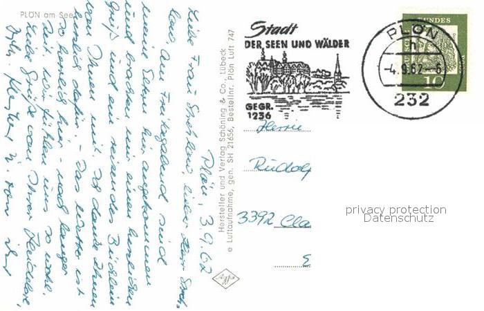72827359 alte Postkarte Ploen See Fliegeraufnahme postalisch gelaufen Erhaltung siehe scans [LiesaD40] KatCode: 11110001057057