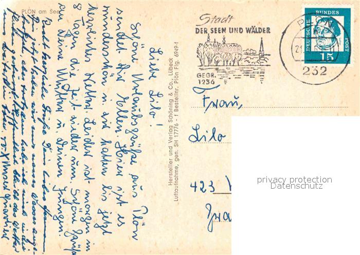 72782861 alte Postkarte Ploen See Fliegeraufnahme postalisch gelaufen Erhaltung siehe scans [WerneD78] KatCode: 11110001057057
