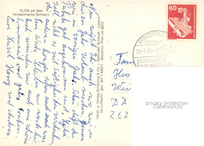 73701147 alte Postkarte Ploen See Fliegeraufnahme postalisch gelaufen Erhaltung siehe scans [WerneD78] KatCode: 11110001057057