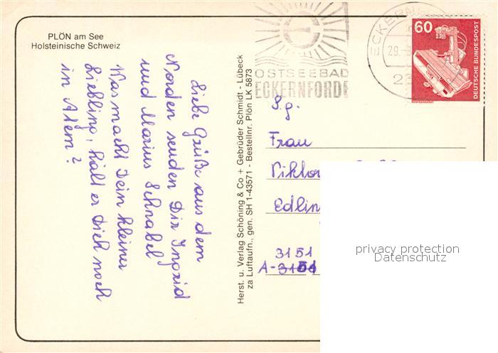 73226028 alte Postkarte Ploen See Fliegeraufnahme postalisch gelaufen Erhaltung siehe scans [LiesaD40] KatCode: 11110001057057