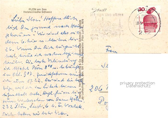 73121198 alte Postkarte Ploen See Fliegeraufnahme postalisch gelaufen Erhaltung siehe scans [LiesaD40] KatCode: 11110001057057