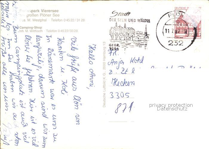 72425043 alte Postkarte Ploen See Fliegeraufnahme Camping See postalisch gelaufen Erhaltung siehe scans KatCode: 11110001057057