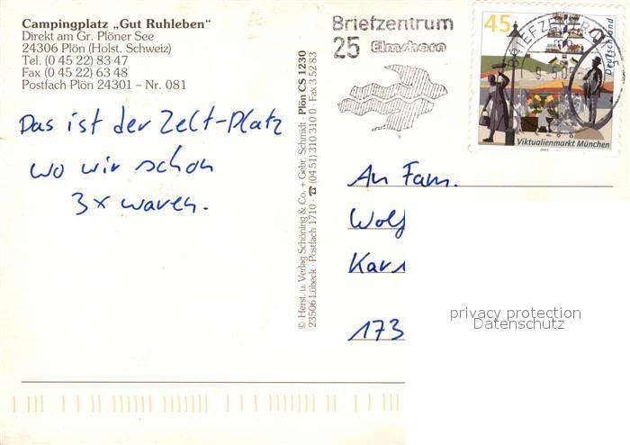 73108983 alte Postkarte Ploen See Fliegeraufnahme Campingplatz Gut Ruhleben postalisch gelaufen Erhaltung siehe scans [NatalD47] KatCode: 11110001057057