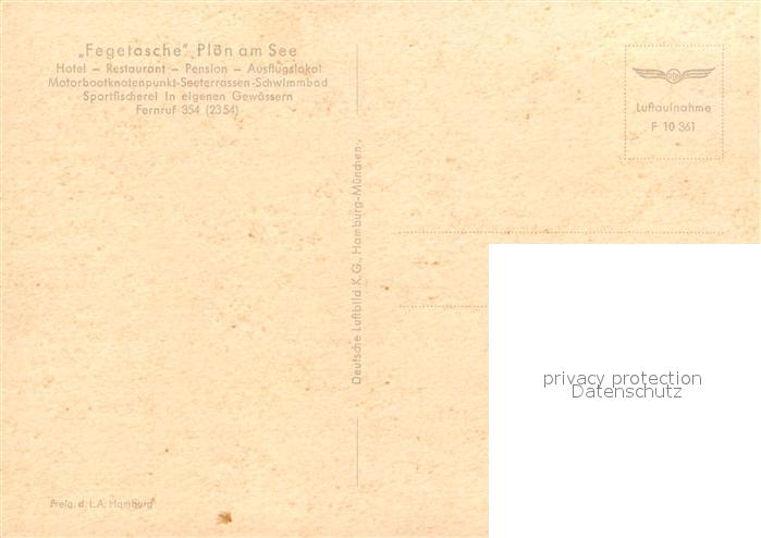 73169855 Ploen See Fliegeraufnahme Fegetasche Hotel Restaurant Pension postalisch nicht gelaufen Erhaltung siehe scans [KathaD81] KatCode: 11110001057057