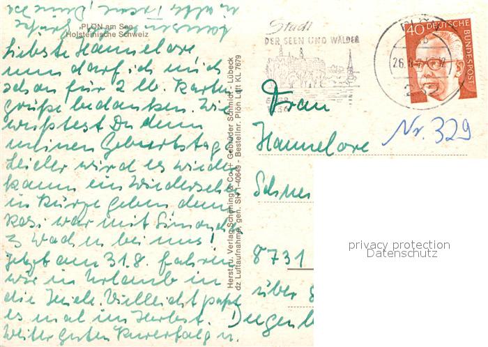 72942535 alte Postkarte Ploen See Fliegeraufnahme Holsteinische Schweiz postalisch gelaufen Erhaltung siehe scans [LiesaD40] KatCode: 11110001057057