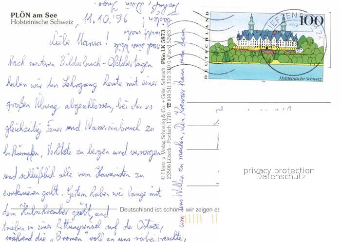 72727789 alte Postkarte Ploen See Fliegeraufnahme mit Schloss Holsteinische Schweiz postalisch gelaufen Erhaltung siehe scans [LiesaD40] KatCode: 11110001057057