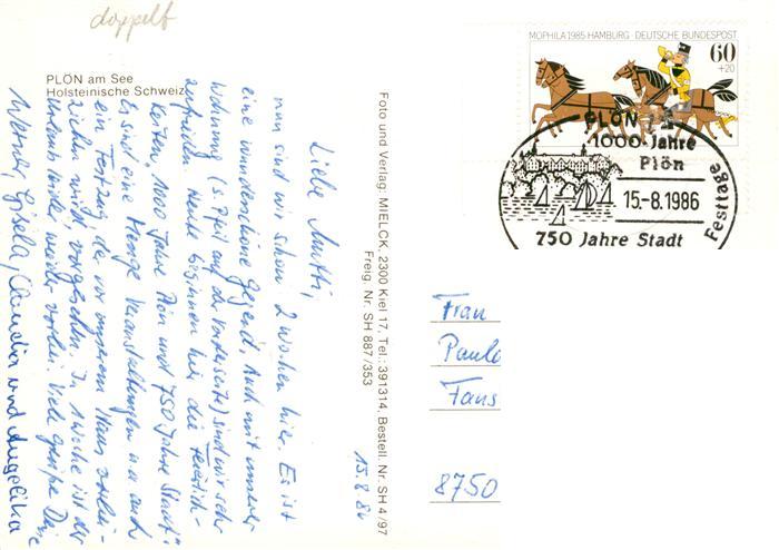 73904375 alte Postkarte Ploen See Fliegeraufnahme mit Schloss postalisch gelaufen Erhaltung siehe scans [WerneD78] KatCode: 11110001057057