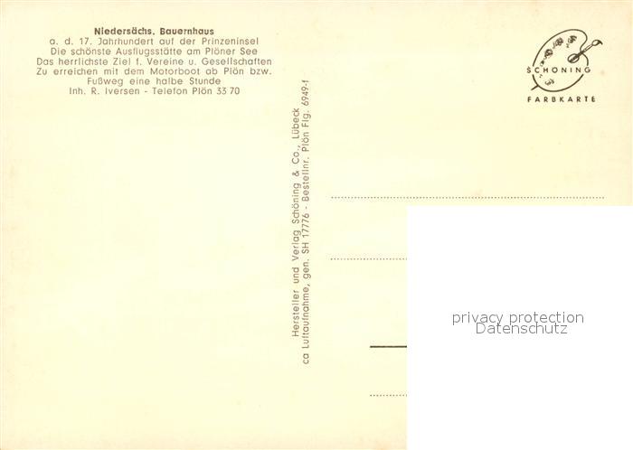 73228596 Ploen See Fliegeraufnahme Niedersaechs. Bauernhaus postalisch nicht gelaufen Erhaltung siehe scans [NatalD47] KatCode: 11110001057057