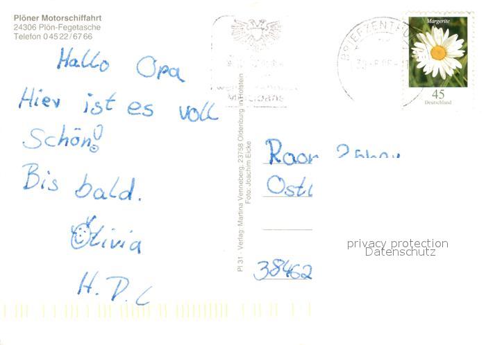 73165986 alte Postkarte Ploen See Fliegeraufnahme Ploener See Rundfahrt postalisch gelaufen Erhaltung siehe scans [KathaD81] KatCode: 11110001057057