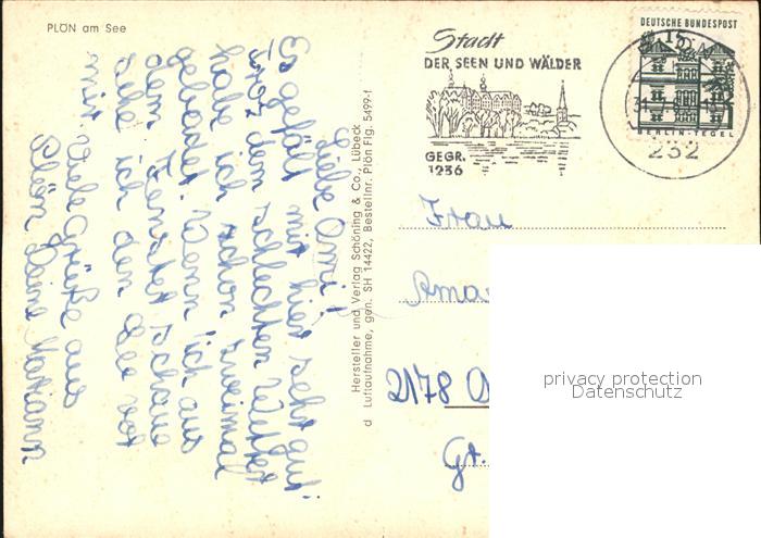 72581588 alte Postkarte Ploen See Fliegeraufnahme Schloss postalisch gelaufen Erhaltung siehe scans [AndreD76] KatCode: 11110001057057